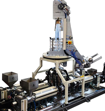 Equipos de extrusión para laboratorio con los diferentes tipos de extrusión, blown, cast, pellet, mono y coextrusión. |